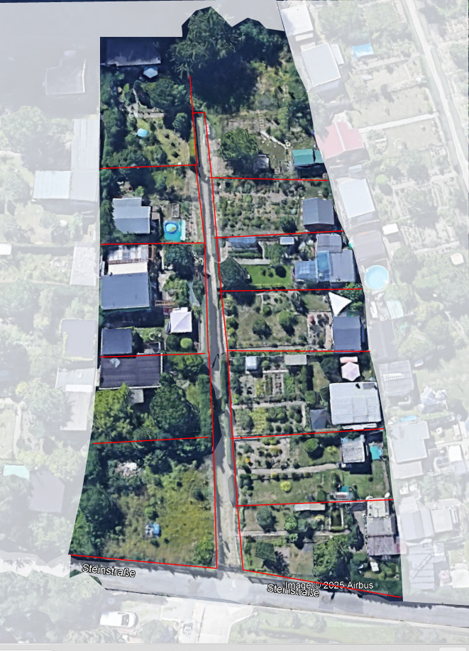 Unser malerisch gelegener Verein, besteht aus drei separaten Gängen, die jeweils von der Steinstraße her, zugänglich sind. Wir bezeichnen sie einfach und salopp Gang 1, 2 und 3. Gang 1 bildet mit dem Vereinsschild den Anfang und auch gleichzeitig den längsten Gang, der bis zum Sportplatz "Ostvorstädische Sporthalle "Ossel"" reicht. (sorry aber er ist kein Durchgang dorthin. Spart Euch den weg.)